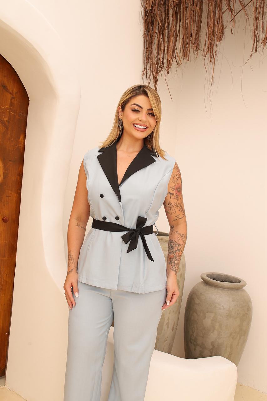 Conjunto calça max colete Nova York Tecido alfaiataria premium importada bem Botique